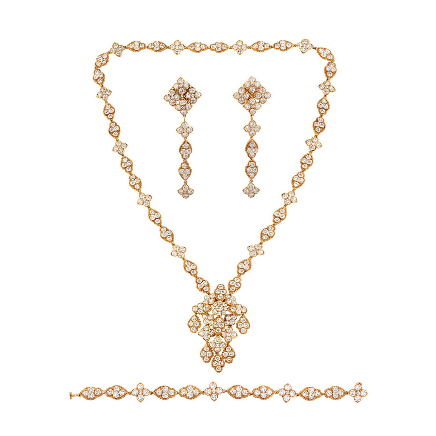 Gold, Turquoise & Amethyst Necklace & Pair of Earrings