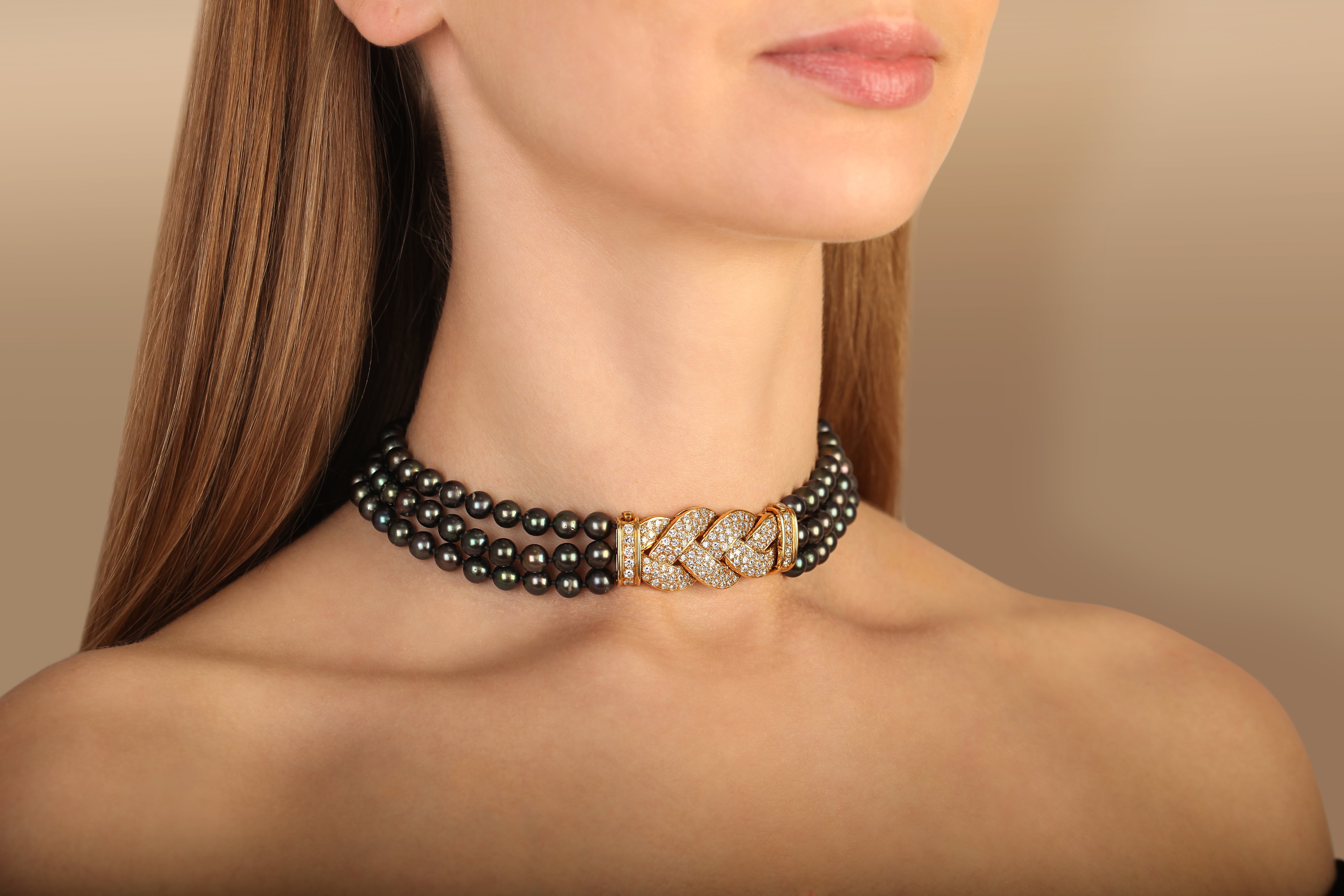 A three-row pearl and diamond choker necklace by Van Cleef & Arpels